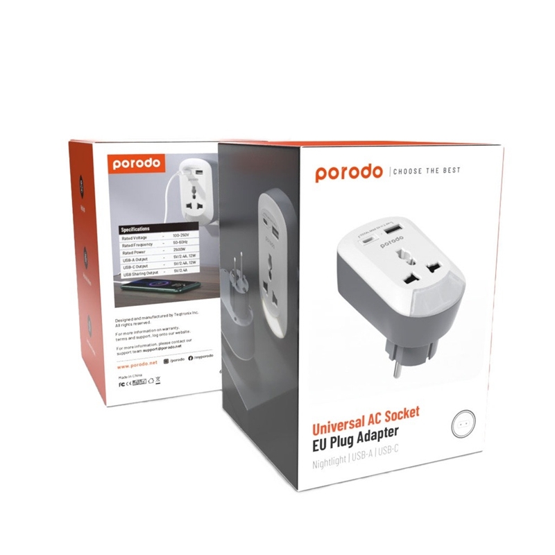 مبدل برق و شارژر پرودو Porodo Universal AC Socket EU Plug Adapter PD-MSACEU