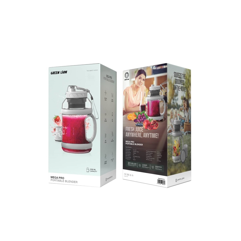 مخلوط کن قابل حمل گرین لاین Green Lion Mega Pro Portable Blender GNMGAPPBLDWH ظرفیت 2000 میلی لیتر