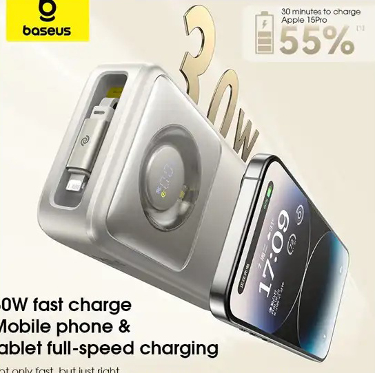 کابل جمع شونده لایتنینگ ظرفیت باتری 20000 میلی آمپر ساعت صفحه نمایش دیجیتال حداکثر توان خروجی 30 وات