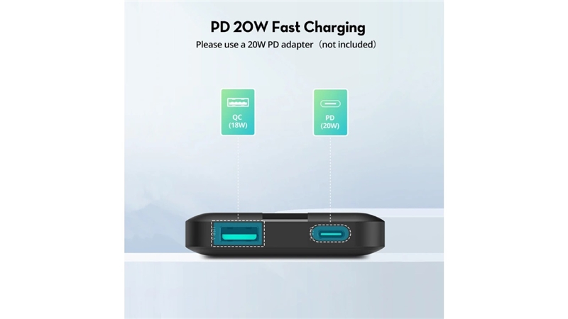 این پاوربانک از فناوری Power Delivery (PD) نیز پشتیبانی می کند، به این معنی که می تواند دستگاه هایی مانند جدیدترین آیفون ها و آیپدها را سریع تر از شارژرهای معمولی شارژ کند. همچنین قادر است تا 20 وات انرژی برای شارژ دستگاه ها فراهم کند که برای دستگاه هایی که از شارژ سریع پشتیبانی می کنند، بسیار مناسب است.