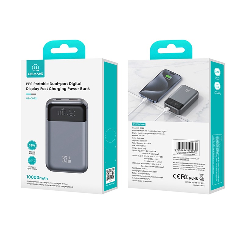 پاوربانک 10000 میلیآمپر ساعتی یوسمز مدل US-CD221 با توان 33 وات، یک دستگاه پیشرفته است که قابلیت شارژ سریع و کارآمد دستگاههای مختلف را فراهم میآورد. این دستگاه با طراحی کوچک و جمع و جور و وزن سبک، به راحتی در کیف یا جیب شما جای میگیرد و به عنوان یک همراه همیشگی برای شارژ دستگاههای شما عمل میکند.