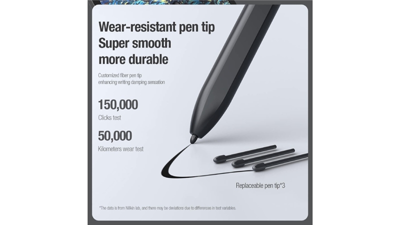 قلم نیلکین iSketch S3 دارای حساسیت به زاویه است که کنترل دقیقی را بر روی طراحی ها و نوشته ها فراهم می آورد این ویژگی به طراحان دیجیتال امکان می‌دهد تا با تغییر زاویه دست، خطوطی با ضخامت‌های مختلف رسم کنند که در خلق آثار هنری کاربردی است. علاوه بر این، نوک این قلم از نوع فیبری مقاوم بوده و تنها 0.5 میلی متر ضخامت دارد که باعث افزایش دقت و کاهش خطا در هنگام استفاده می شود. همچنین نوک آن قابلیت تعویض دارد که باعث افزایش طول عمر محصول می شود.