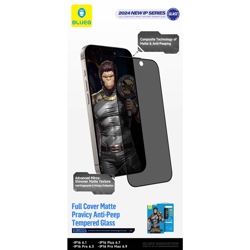 محافظ صفحه بلو Blueo Full Cover Anti-Peep privacy Matte Glass Iphone مناسب برای Apple iPhone 16 Pro Max
