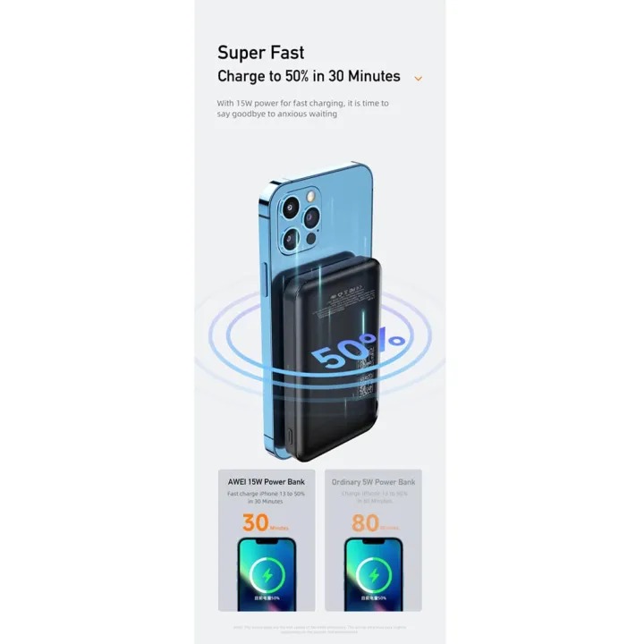 پاوربانک وایرلس 10000 مگنتی اوی Awei P139K توان 22.5 وات