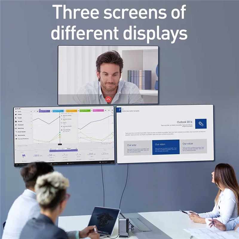 کابل های متفاوتی که در طول روز با آن ها سر و کار داریم، انواع مختلفی دارند و این تنوع و تعدد فراوان آن ها باعث می شود که بعضا برای استفاده، پورت کافی نداشته باشیم، تصور کنید که بخواهید کابل، فلش مموری و... خود را نیز به دستگاه متصل کنید. به همین دلیل بسیاری از اوقات نمی توان بدون اینکه کابلی را از درگاهی خارج سازیم، کابل دیگری را به آن بزنیم. کامپیوتر، لپ تاپ و... فرق ندارد، این مشکل مشترکی است که بین این دستگاه وجود دارد. هاب چندکاره بیسوس Baseus Working Station Three Screen Multifunctional به خوبی می تواند به کمک کاربران آمده و علاوه بر ایجاد تعداد پورت لازم برای آن ها، کاربری های محدود آن ها را نیز گسترش داده و بتواند طیف وسیع تری از کابل ها مانند کابل HDMI و... را به گوشی و کامپیوتر شما وصل کند.