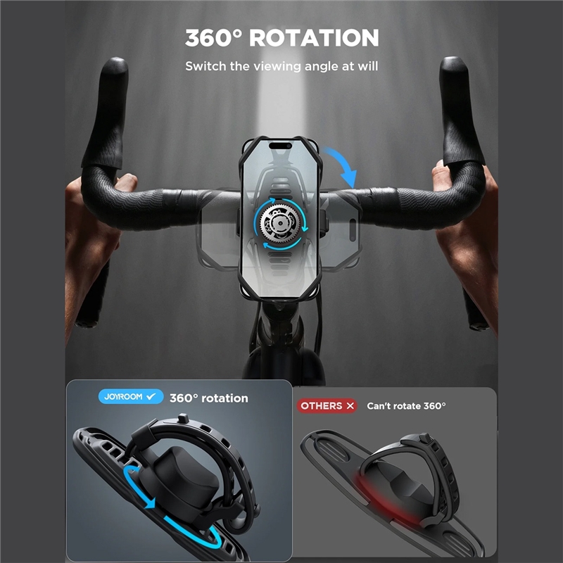 Joyroom JR-ZS382 امکان چرخش کامل 360 درجه را دارد که به کاربران اجازه می‌دهد گوشی خود را در هر زاوی های که بخواهند تنظیم کنند . این قابلیت باعث می‌شود کاربران بتوانند بدون نیاز به برداشتن گوشی از هولدر ، به راحتی مسیر را از طریق GPS دنبال کرده یا به تماس‌ ها و پیام‌ ها دسترسی داشته باشند .