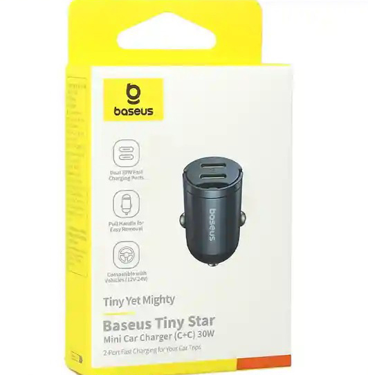 شارژر فندکی دو پورت 30 وات بیسوس Baseus Tiny Star C+C Mini Car Charger VCHXX-CC