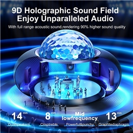 سایر توضیحاتتوان خروجی: 20 وات پخش موسیقی از طریق: بلوتوث 9 حالت نورپردازی RGB باتری 400mAh با زمان پخش تا 4 ساعت