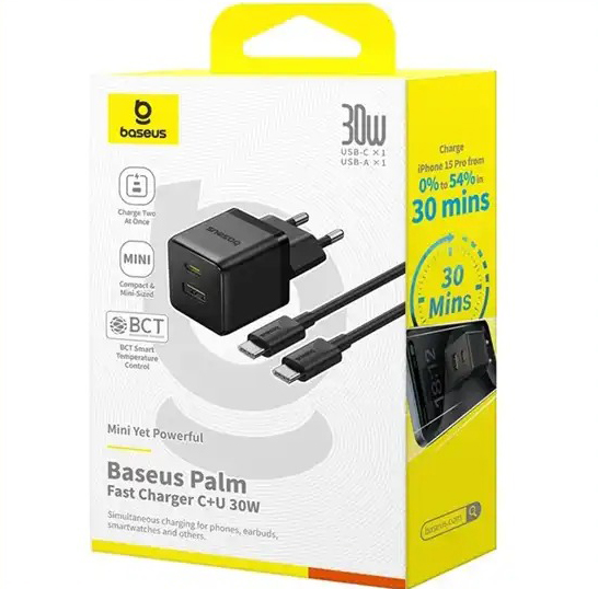 Baseus Palm Fast Charger 30W Type‑C+USB CCZC30UE