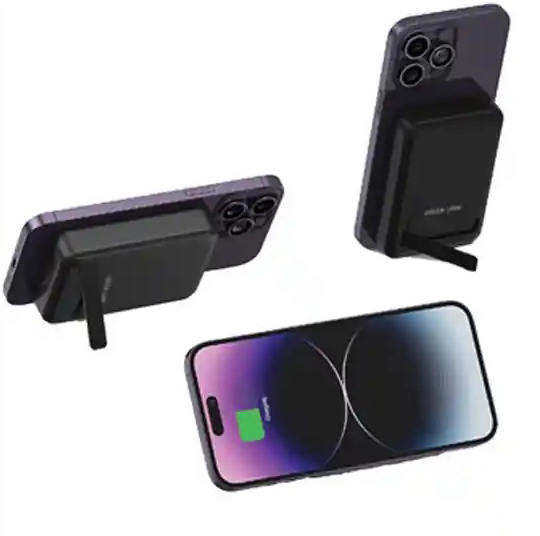 این پاوربانک ۱۰۰۰۰ میلیآمپر ساعتی دارای شارژ بیسیم مغناطیسی MagSafe با توان ۱۵ وات و پورت USB‑C با شارژ سریع PD 20 وات است. همچنین پایه بازشوی مخفی (Kick Stand) به شما اجازه میدهد تا گوشی یا تبلت را هنگام شارژ در حالت ایستاده و مناسب برای تماشای ویدیو قرار دهید.