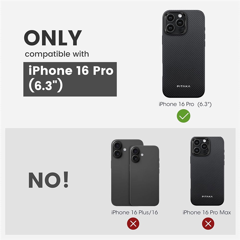 قاب آیفون ۱۶ پرو PITAKA | محافظ نظامی با فیبر آرامید ۶۰۰D + سازگار با ماگسیف