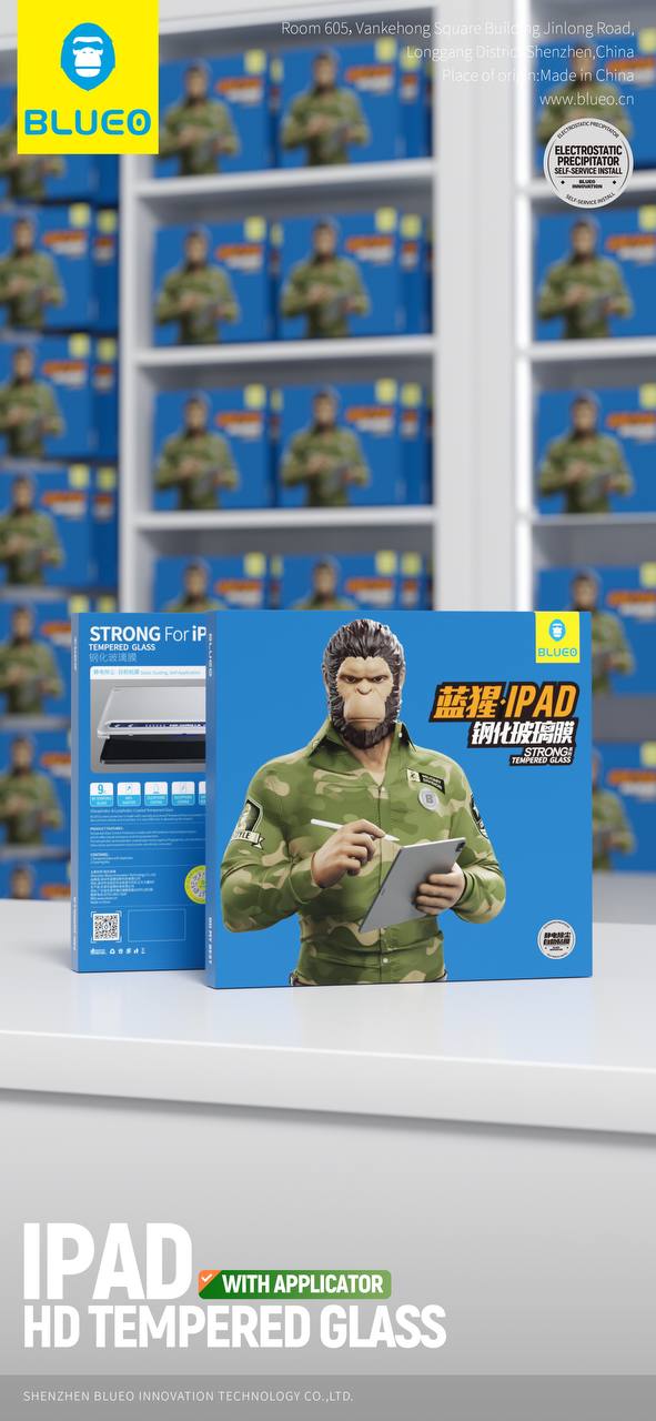 محافظ صفحه آیپد برند بلوئو Blueo مدل Strong Tempered Glass بهمراه ابزار نصب آسان