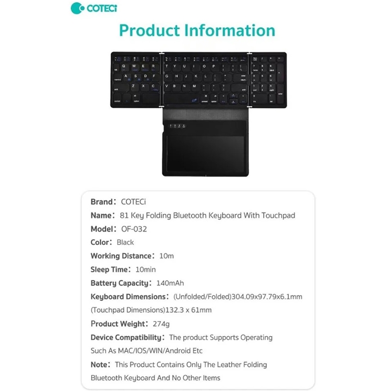 ✅ ویژگی‌های کلیدی کیبورد تاشو COTECI OF-032:
