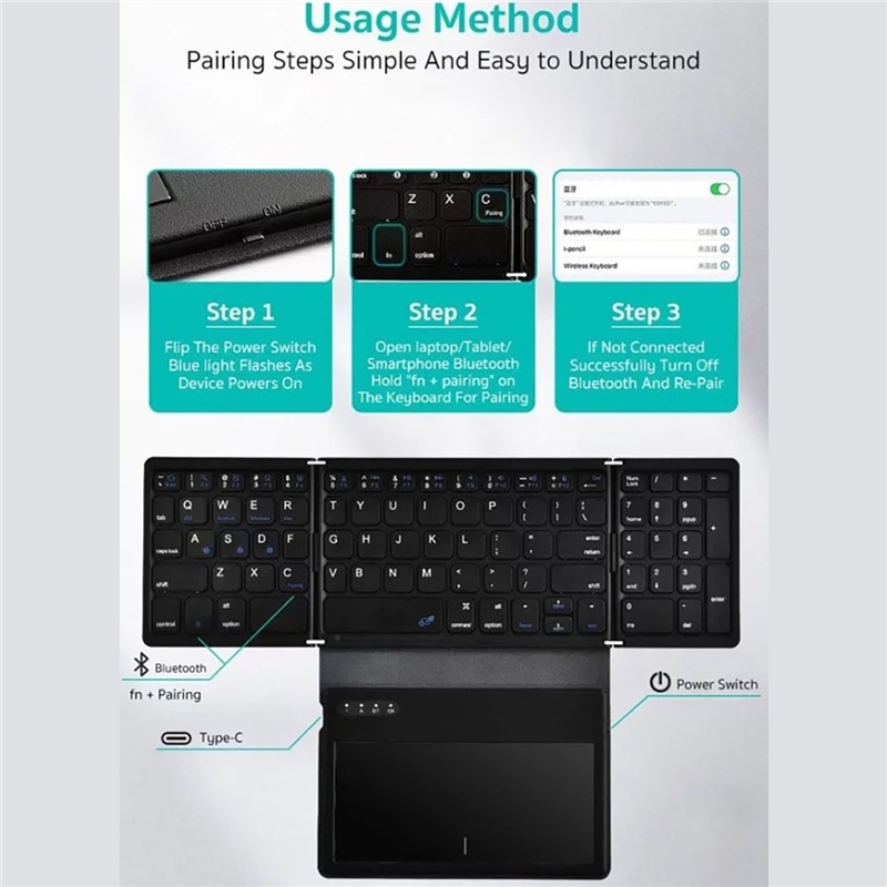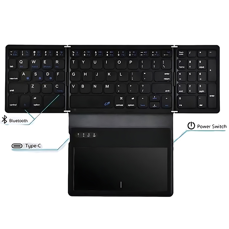 سایر توضیحاتطراحی تاشو و جمع‌وجور: به راحتی قابل حمل است و آن را برای سفر و کار از راه دور ایده‌آل می‌کند. صفحه لمسی یکپارچه: صفحه لمسی داخلی امکان کنترل دقیق مکان‌نما را بدون نیاز به ماوس خارجی فراهم می‌کند. اتصال بلوتوث: به طور یکپارچه از طریق بلوتوث به دستگاه‌ها متصل می‌شود و از پلتفرم‌های Mac، IDS، Windows و Android پشتیبانی می‌کند. عمر طولانی باتری: مجهز به باتری قابل شارژ 140 میلی‌آمپر ساعتی است که امکان استفاده طولانی‌مدت بین شارژها را فراهم می‌کند ساختار سبک: تنها 2740 گرم وزن دارد و حمل و نقل آسان را بدون افزایش حجم تضمین می‌کند