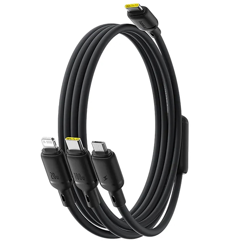کابل سه سر فست شارژ 100 وات بیسوس مدل Baseus Silky One-for-Three CB000166