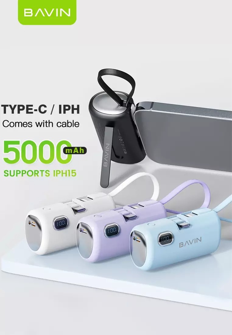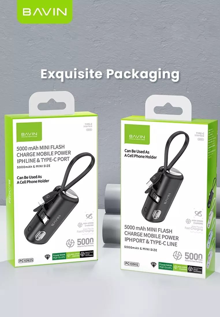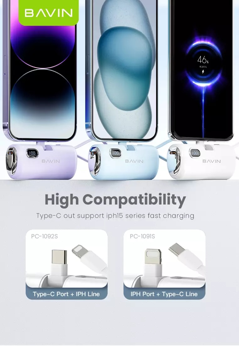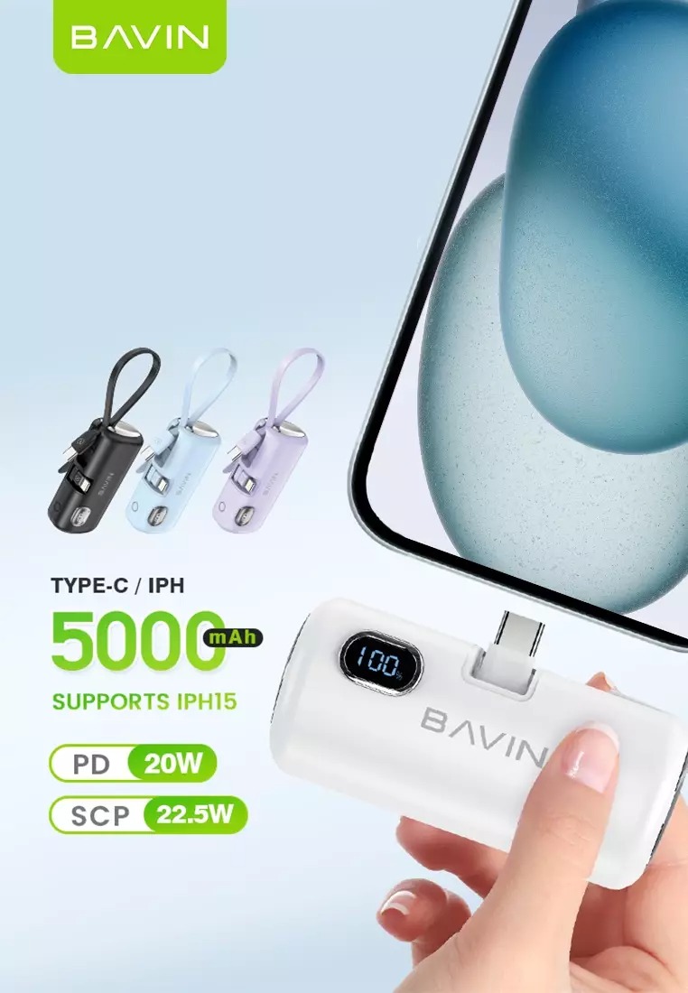 پاوربانک 5000 باوین Bavin PC1092s توان 22.5 وات همراه با کانکتور تایپ سی