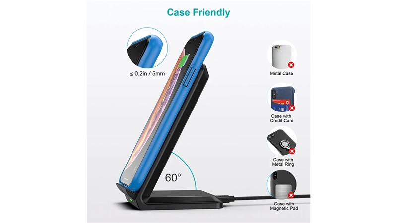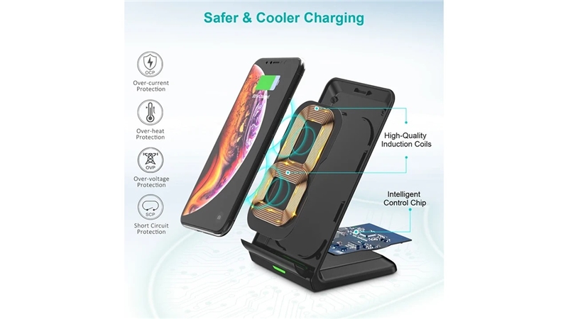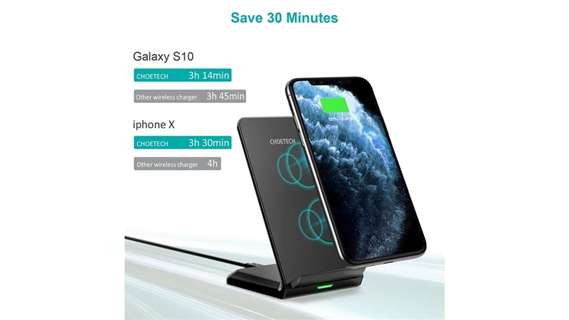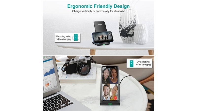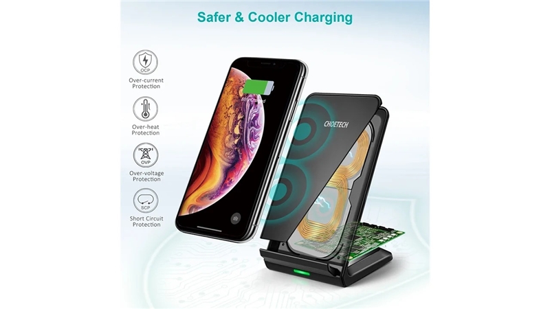 شارژر وایرلس چویتک T524-S با توان خروجی 10 وات، از جمله شارژرهای بیسیم سریع محسوب میشود که برای اکثر گوشیهای مجهز به iQ مانند مدلهای مختلف آیفون و سامسونگ قابل استفاده است.این دستگاه دارای درگاه ورودی Micro USB بوده و برای عملکرد بهینه نیاز به آداپتوری با خروجی حداقل ۵ ولت و ۲ آمپر دارد. اگر از آداپتور Quick Charge 2.0 یا 3.0 استفاده کنید، سرعت شارژ بالاتر خواهد رفت.طراحی ایستادهی این پایه به شما اجازه میدهد تا گوشی را در حالت عمودی روی آن قرار دهید؛ بنابراین در حین شارژ میتوانید بهراحتی نوتیفیکیشنها را ببینید، تماس بگیرید یا فیلم تماشا کنید. سطح تماس پایه از مواد ضد لغزش ساخته شده تا دستگاه هنگام استفاده تکان نخورد یا نیفتد.