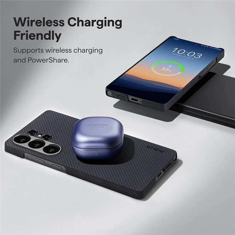 قاب گلکسی S25 Ultra مدل PITAKA Ultra-Slim Case 600D کاملاً با شارژ بی‌سیم سازگار است و نیازی به جدا کردن قاب برای شارژ نیست. این ویژگی استفاده روزمره را ساده و راحت می‌کند.