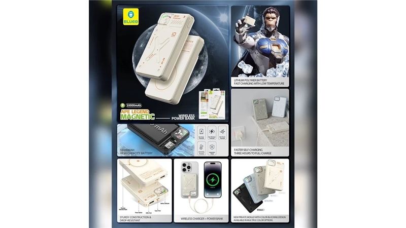 اگر به دنبال یک پاوربانک وایرلس با طراحی لوکس و کارایی بالا هستید، مدل Blueo Ape Legend PD10  یکی از بهترین گزینه‌های بازار است. این محصول نه تنها ظاهری شیک و مدرن دارد، بلکه با قابلیت‌های متنوعی مانند شارژ سریع PD ، توان بالا و اتصال مغناطیسی دقیق، تجربه‌ای راحت و حرفه‌ای را برای کاربران آیفون و سایر گوشی‌های هوشمند فراهم می‌کند.