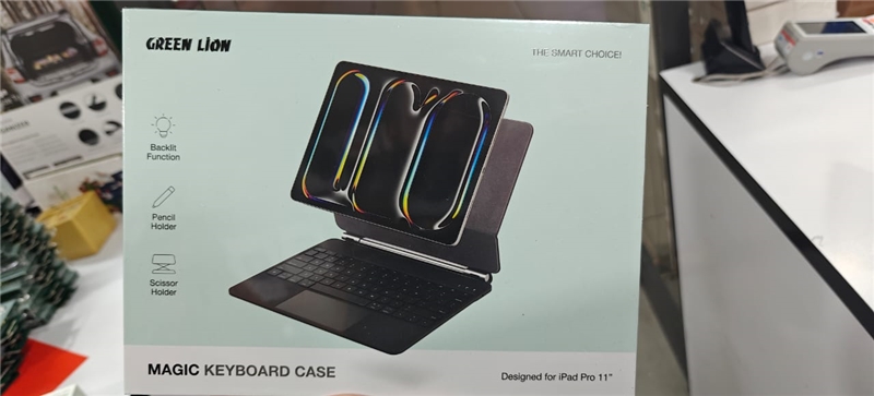 کیف کیبورد جادویی گرین لاین با طراحی مشکی به‌ طور خاص برای آیپد ساخته شده است. این افزودنی مدرن تجربه شما از آی‌پد را با ادغام یک کیبورد کامل درون یک قاب جذاب بهبود می‌بخشد.