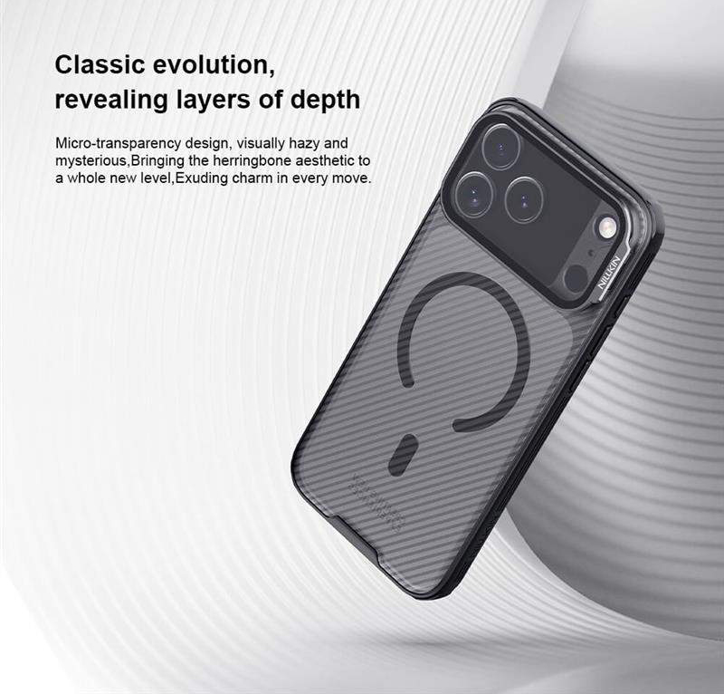 اگر دوست دارید استایلی شیک و جذاب داشته باشید و از گوشیتان محافظ کنید.کاور نیلکین مدل Camshield Prop Magnetic Clear Transparent Lens Guard گزینه ایده‌آلی است.این قاب استایلی خاص دارد چرا که بدنه نیمه شفاف آن تلفیقی از زیبایی کاور و بدنه گوشی را به ارمغان میاورد . کیفیت و کارایی بسیار بالایی هم دارد.کاور نیلکین مدل Camshield Prop Magnetic Clear ظریف و خوش‌دست است.باتکنولوژی‌های مدرن طراحی شده است و ظرافت‌ های زیادی دارد.نکته بسیار جالب این کاور محافظ ویژه از قسمت لنز ها به صورت لبه فلزی و داخل شیشه ای است که طارحی بی نظیری است . از دست‌تان نمی‌لغزد .این قاب نسبت به سایر قاب‌های سخت از نظر امنیت و امکانات و همچنین دوام در سطح بسیار بالاتری قرار دارد. Camshield Prop Magnetic Clear Transparent Lens Guard بصورت Magnetic یا مغناطیسی طراحی شده است به این معنی که میتوانید بواسطه آن به راحتی گوشی همراه خود را حتی در هنگام داشتن قاب بر روی آن به صورت بی سیم شارژ کنید ویا از اکسسوری های مختلفMagneticاستفاده کنید.کاور نیلکین مدل Camshield Prop Magnetic Clear Transparent Lens Guard علاوه بر امر محافظت از گوشی و زیبایی،دوربین گوشی رانیز بخوبی پوشش میدهد.کاور نیلکین مدل از جنسPCسخت بوده وبخش های اطراف آن دارای خط های موربی می باشد که برای جلوگیری از لغزیدن گوشی در دستان شما طراحی شده است.همچنین قسمت پشتی قاب نیز از همین طرح پیروی می کند.امامزیت اصلی این قاب محافظت کامل از دوربین گوشی است.در قسمت پشت کاور نیلکین مدل Camshield Prop Magnetic Clear Transparent Lens Guard یک بخش متحرک وجود دارد که مانند یک درپوش لولایی روی دوربین گوشی رامی پوشاند.این محافظ،به صورت بسیار محکم وبه شکل فلزی با کیفیت باطرح زیبای نیلکین در قسمت بیرونی کاور طراحی و ساخته شده است.در صورت تمایل می توانید این درپوش را کنار زده و از دوربین خود استفاده کنید.از این درپوش می توان به عنوان استند استفاده کرد و گوشی را روی سطح قرار داد.این قاب کاملا متناسب با ابعاد گوشی طراحی شده است.تمام قسمت پشت و لبه های اطراف را به خوبی پوشش می دهد و قسمت پورت و اسپیکرها را بخوبی برش داده است. پشت این قاب به طور نیمه شفاف و کدر طراحی و ساخته شده تا ترکیب رنگ خود گوشی و این قاب ، زیبایی خاصی رو برای شما به ارمغان می آورد.