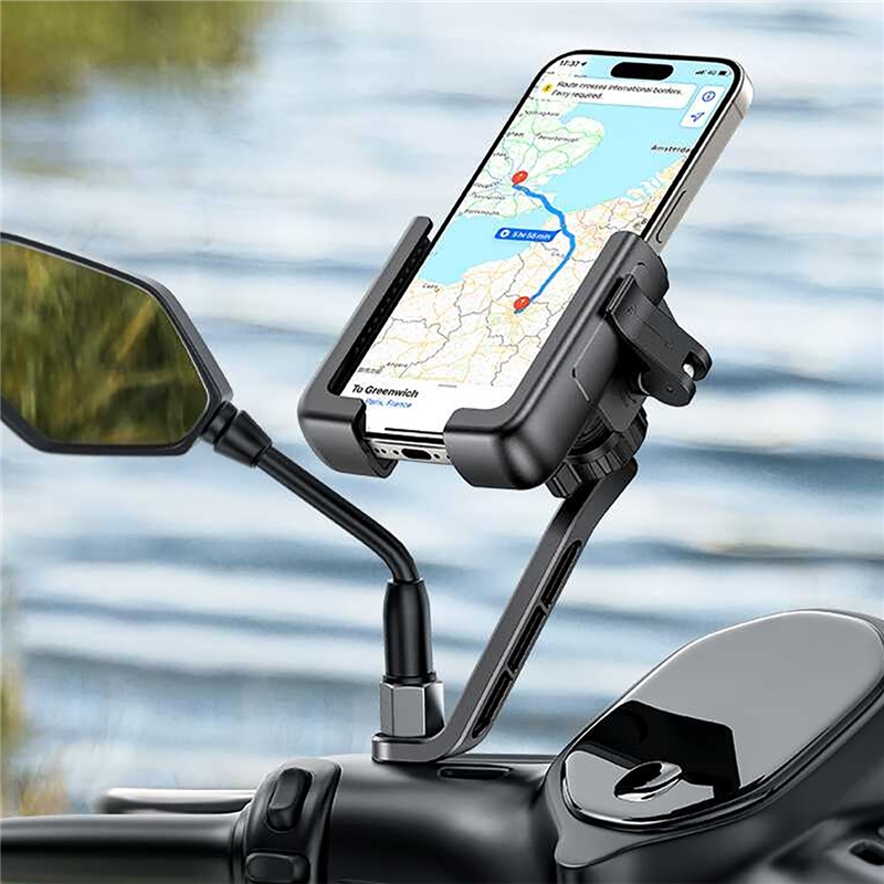 ⚙️ سیستم قفل مکانیکی ضد‌لغزش: چهار بازوی قفل‌شونده برای نگهداری محکم گوشی حتی در مسیرهای ناهموار.