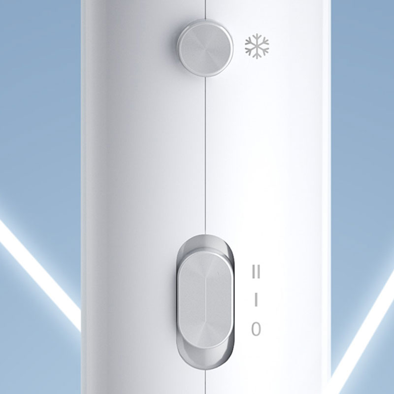روی بدنه ی سشوار شیائومی Enchen Air 5 دکمه کشویی سه حالته تعبیه شده که حالت اول خاموش، حالت دوم سرعت باد گرم با لول یک، حالت سوم سرعت باد گرم با لول دو بوده و با فشار دکمه ی تعبیه شده در بالای آن قسمت باد سرد تولید خواهد شد.