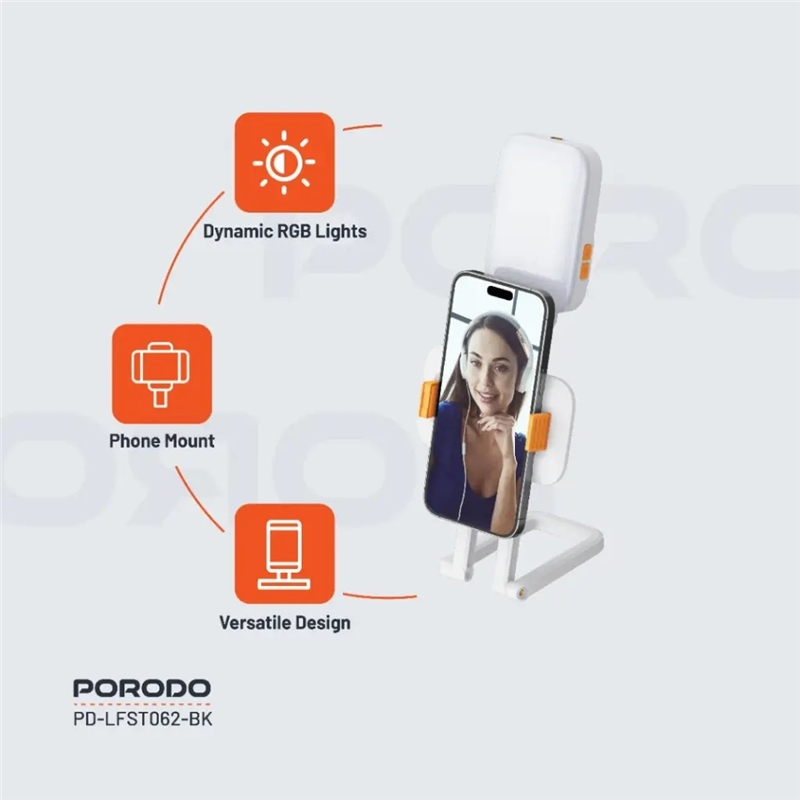استند رومیزی Porodo Foldable RGB Fill Light Stand یک ابزار حرفهای برای نورپردازی عکس و فیلم است که با طراحی تاشو، نور قابل تنظیم RGB و پایه مقاوم، انتخابی ایدهآل برای تولیدکنندگان محتوا، ولاگرها و کاربران خانگی محسوب میشود.