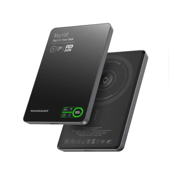 پاوربانک Powerology MagVolt PPBCHA62BK با ظرفیت بسیار بالا و امکانات چندمنظوره، انتخابی حرفه‌ای برای کاربرانی است که به منبع انرژی پایدار نیاز دارند. این محصول علاوه بر ظرفیت بزرگ، از شارژ بی‌سیم مغناطیسی، پورت‌های متنوع و طراحی مقاوم بهره‌مند است و برای سفر، مهمانی، استفاده روزمره و محیط‌های کاری بسیار مناسب است.