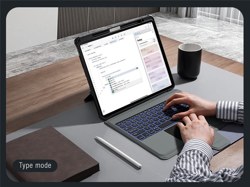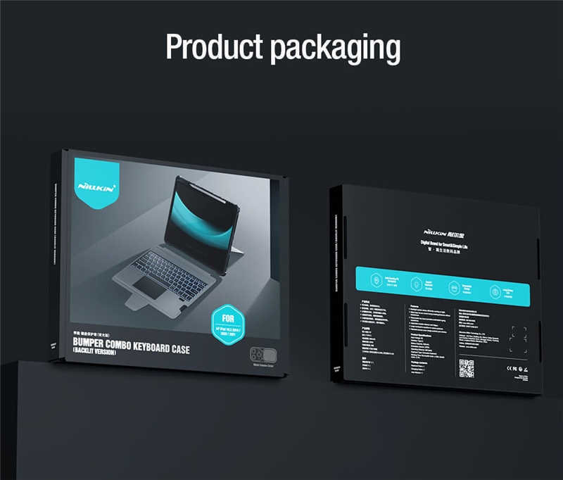 کیف کلاسوری نیلکین مدل Bumper Combo Backlit Keyboard جدیدترین نسخه Combo Keyboard می باشد که در مدل Backlit علاوه بر ویژگی های نسخه قبلی ویژگی نور پس زمینه در کیبورد با 7 رنگ متفاوت به آن اضافه شده که دیگر در فضای کم نور و یا شب به راحتی میتوانید از کیبورد استفاده کنید و دیگر دغدغه نور هنگام تایپ کردن را نداشته باشید.جنس این کاور ازTPUوPCساخته شده که دارای مقاومت بالایی می باشد.این کیف کلاسوری دارای محافظ دوربین بوده که به صورت کشویی عمل میکند.یکی از قابلیت های مفید در قاب تبلت ها داشتن استند است؛چون این دستگاه ها ابعاد بزرگی دارند و نگهداری از آنها روی استند بسیار راحت تر و کم خطر تر است.از همین رو کیف کلاسوری دارای یک استند تاشو است که استحکام کافی برای نگهداشتن و استفاده از تبلت را خواهد داشت.شما می توانید حالت های مختلفی برای قرار گرفتن تبلت انتخاب کنید.این استند قابلیت تنظیم زاویه بین 110تا180درجه را دارد.این محصول نیلکین دارای یک کیبورد قابل جدا شدن می باش .شما در صورت نیاز می توانید از این کیبورد استفاده کرده و یا آن را جدا کنید.کلیدهای این کیبورد به گونهای(قطرهای)طراحی شده که قالب انگشتان شما باشد.این کلیدها بسیار بی صدا بوده و وزن پایینی دارد؛بعلاوه کار با آن شما را خسته نمیکند.کلیدهای کیبورد کیف کلاسوری بسیار حساس بوده و با کمترین فشار عمل خواهد کرد.بر روی این کیبورد یک پد لمسی وجود دارد که می توانید از آن به جای موس استفاده کنید.شما می توانید از طریق بلوتوث این کیبورد را به دستگاه خود متصل کنید.نرخ نمونه برداری لمسی پد لمسی آن120هرتز بوده که بسیار حساس بوده و از چند لمس همزمان پشتیبانی می کند.این کیبورد دارای یک باتری5000میلی آمپر ساعتی بوده که برای پر شدن آن نیاز به حدود 3 ساعت شارژ بوده و با پر بودن شارژ تا100 ساعت می توانید از آن استفاده کنید؛البته این عدد برای روزی2ساعت کار با کیبورد است که متناسب با استفاده شما متغییر خواهد شد.قابل ذکر است نسخه بلوتوث این کیبورد3.0می باشد و محدوده عملکرد آن حدود10متر است.در قسمت جلویی این قاب، جای برای قرار گرفتن قلم هوشمند اپل تعبیه شده که می توانید قلم خود را در این قسمت ها قرار دهید. با قرار گرفتن قلم در قسمت جلویی تعبیه شده در تبلت، می توانید قلم خود را به صورت وایرلس شارژ کنید.