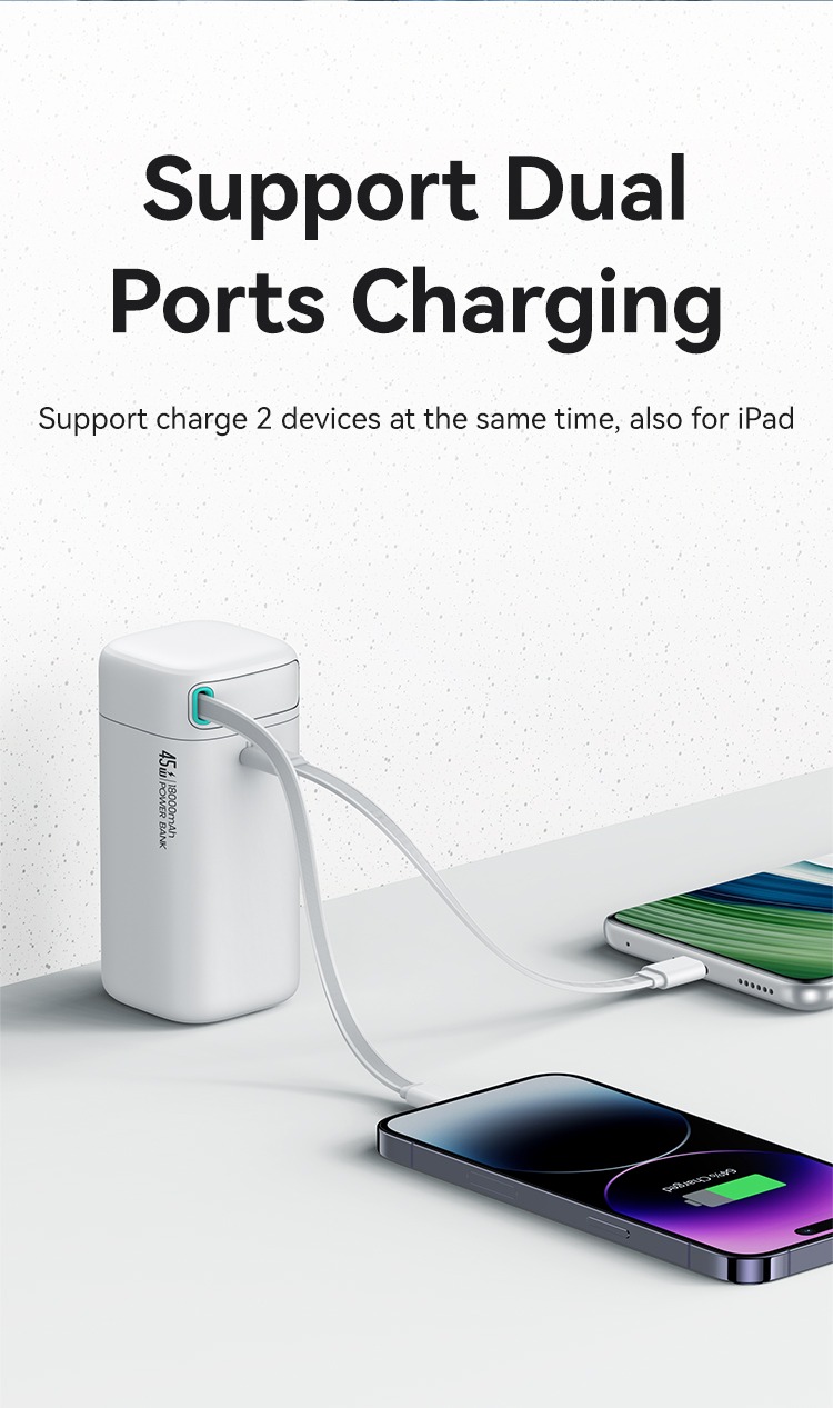بدنه مقاوم و طراحی مدرن این پاوربانک باعث شده تا برای استفاده روزمره، سفر و محیط کاری کاملاً مناسب باشد. ابعاد و وزن آن نیز حملونقل آسان را تضمین میکند.