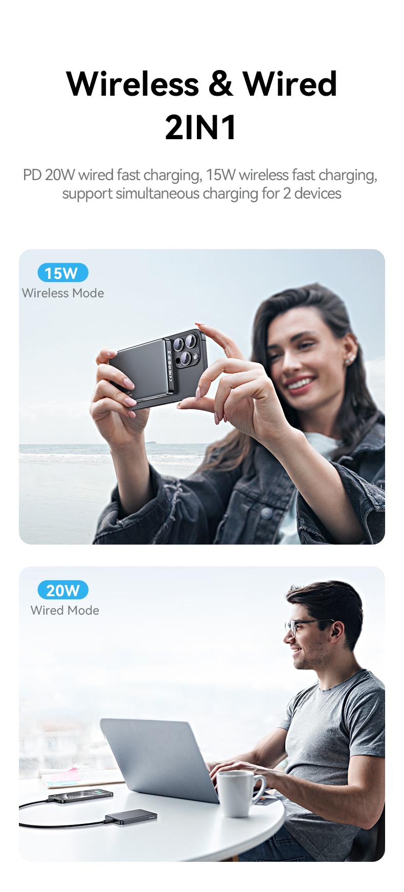 این پاوربانک از توان خروجی 20 وات پشتیبانی میکند و میتواند گوشیهای هوشمند سازگار را با سرعت مناسب و ایمن شارژ کند. شارژ سریع باعث میشود زمان انتظار کاهش یافته و بهرهوری در استفاده روزمره افزایش یابد.