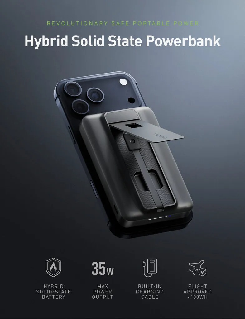 سایر امکاناتباتری هیبرید حالت جامد — ضد انفجار و ضد آتش‌سوزی 🧲 دارای گواهینامه Qi2 — شارژ بی‌سیم مغناطیسی، سریع (15W) و ایمن ⌚ شارژر داخلی اختصاصی برای اپل واچ 🔌 کابل USB-C جمع‌شونده با خروجی شارژ سریع 35 واتی 🔋 ظرفیت 10000 میلی‌آمپرساعتی برای یک روز کامل 📱 شارژ همزمان تا 3 دستگاه (بی‌سیم + سیمی + اپل واچ) ✈️ ایده‌آل برای سفر با بالاترین سطح ایمنی 💎 دلیل قیمت بالا: فناوری باتری خودروهای الکتریکی + گواهی Qi2 + یکپارچگی طراحی