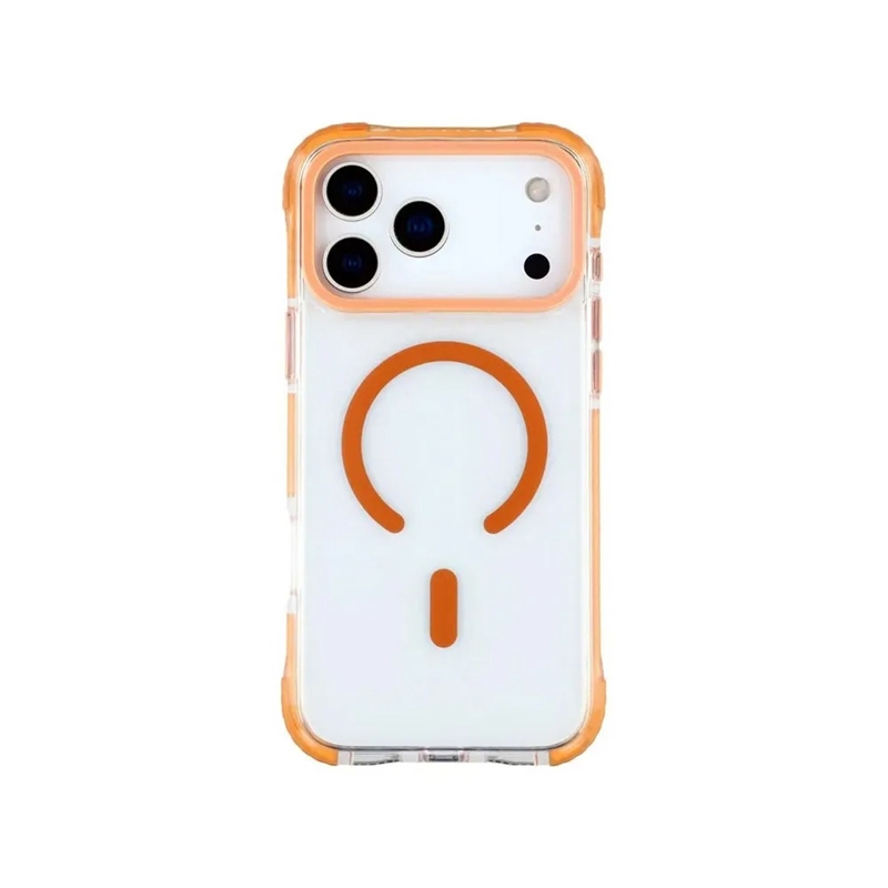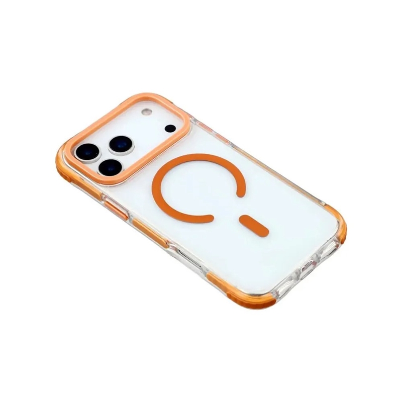 سایر امکاناتپنل پشتی کریستالی شفاف برای نمایش زیبایی گوشی 🛡️ محافظت ضدضربه تا 3 متر با کیسه‌های هوایی گوشه‌ای 🍊 قاب دورنگی نارنجی از TPU برای گیرایی و استایل 🧲 آهنرباهای پرتوان و سازگار با MagSafe 📏 لبه‌های برجسته محافظ صفحه و دوربین ✨ ترکیب منحصربه‌فرد شفافیت + استحکام + طراحی رنگین 💪 انتخاب نهایی برای فعالان، والدین و افراد پرتحرک