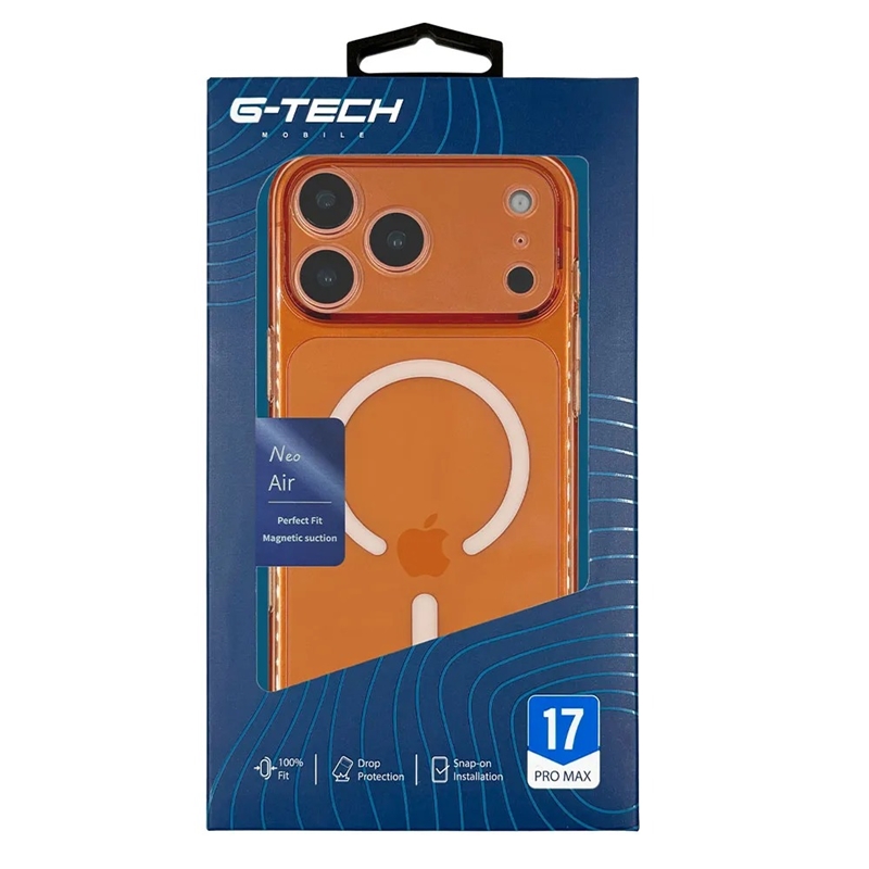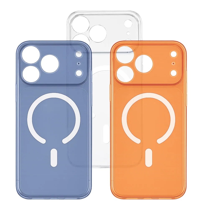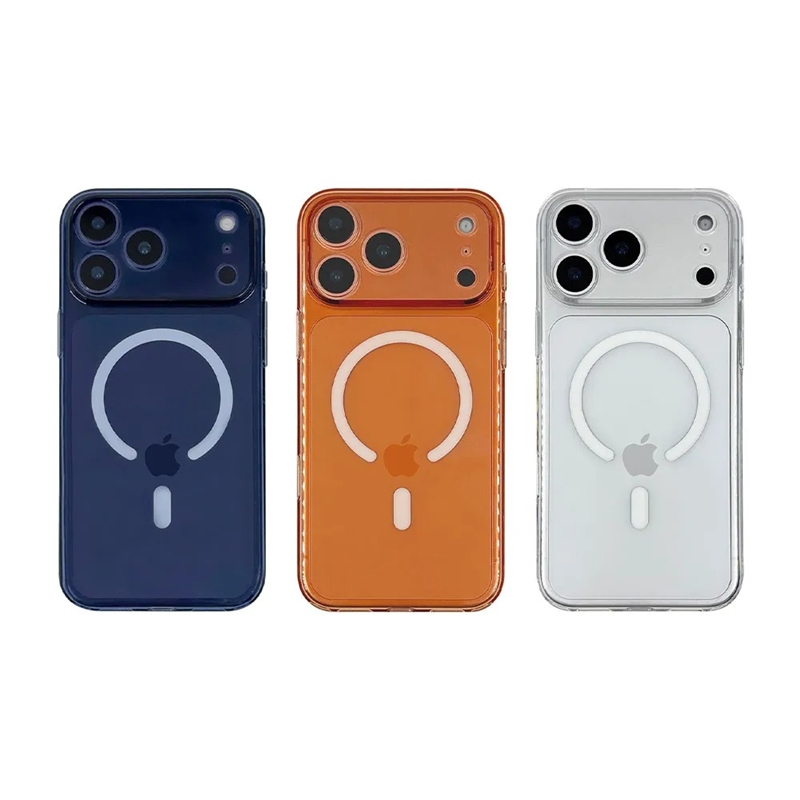 رنگ‌بندی هماهنگ: در سه رنگ کریستالی شفاف، نارنجی و آبی تیره ارائه می‌شود که همگی با پالت رنگی آیفون ۱۷ پرو مکس همخوانی دارند. رنگ‌های نارنجی و آبی، ته‌رنگی ظریف به پشت شفاف می‌بخشند.