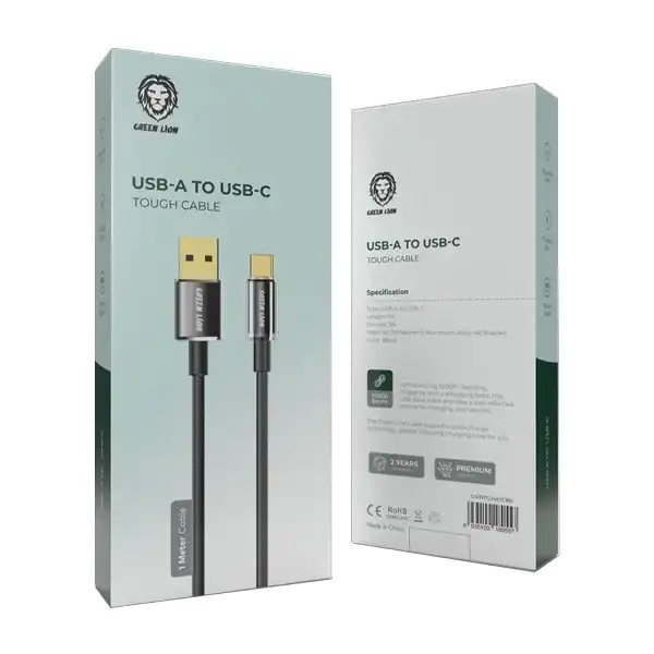 کابل شارژ سر تایپ سی 1 متر گرین لاین Green Lion USB-A to USB-C Tough Cable GNTPTGHATCBK