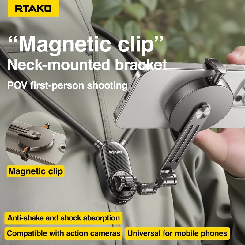 هولدر Rtako Neck Phone & Camera Holder NH01-M یک پایه گردنی چندمنظوره است که به‌صورت راحت و بدون دست، گوشی یا دوربین شما را در زاویه مناسب نگه می‌دارد. این هولدر با طراحی سبک، منعطف و قابل تنظیم، برای تماشای ویدیو، ضبط محتوا، تماس تصویری، مطالعه یا … در هر مکانی ایده‌آل است و تجربه‌ای بدون خستگی برای کاربر فراهم می‌کند.