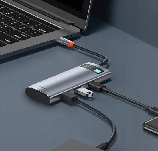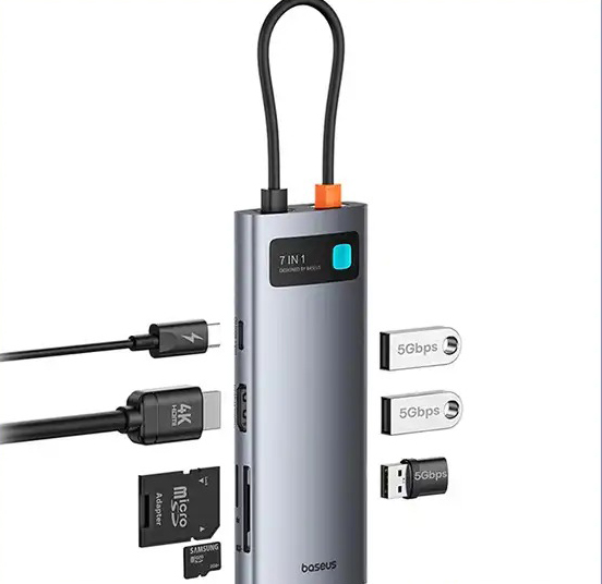هاب Baseus Metal Gleam Series Hub BS-OH146A یک تبدیل حرفهای USB-C به چند پورت است که برای افزایش قابلیت اتصال لپتاپ، مکبوک، تبلت و گوشیهای دارای Type-C طراحی شده است. این هاب با 7 پورت کاربردی شامل HDMI، USB 3.0، Power Delivery و کارتخوان SD/TF امکان اتصال همزمان چند دستگاه را فراهم میکند و انتخابی ایدهآل برای کاربری حرفهای، اداری و روزمره محسوب میشود.