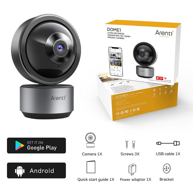 Arenti Dome1 Ultra HD 3MP/2K Indoor Pan Tilt Zoom Privacy Camera