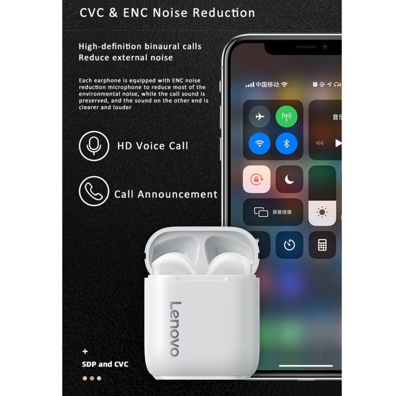 هندزفری Lenovo LivePods LP2 Wireless Handsfree با بلوتوث 5.0 و استاندارد IPX5، مجهز به سیستم کاهش اختلال صدا ENC و CVC تجربه یک تماس با کیفیت عالی را با کنترل هوشمند فراهم می‌کند.
