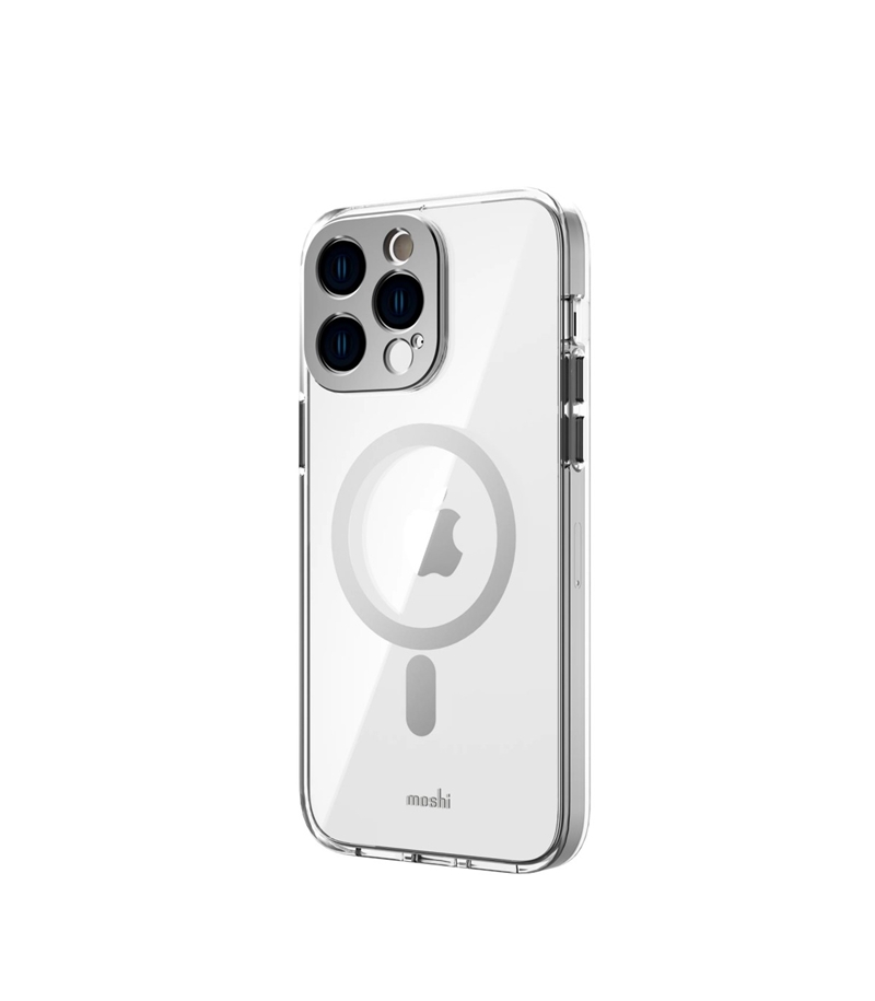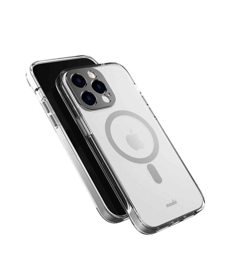 کیس شفاف موشی مناسب iPhone 14 Pro مدل Moshi iGlaze یک قاب با کیفیت برای محافظت کامل و استفاده با خیال آسوده از آیفون است. این محصول دارای محافظ لنز و دکمه‌های آلومینیومی است که در کنار زیبایی، از نقاط حساس گوشی محافظت می‌کند. آلومینیوم به کار رفته در این کیس موشی دارای درجه کیفی به کار رفته در صنایع هوافضا است. این کیس ساختار دو گانه دارد که در قسمت دور ژله‌ای و TPU است و در قسمت پشتی برای محافظت بیشتر و شفافیت بالاتر از جنس پلی کربنات است. این کیس از انواع لوازم جانبی مگ سیف پشتیبانی می‌کند و برای شارژ بی‌سیم مناسب است.