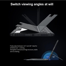 کیف کلاسوری نیلکین مدل New Bumper Combo Keyboard یکی از مهم ترین و کاربردی ترین لوازم جانبی است که شما در کنار iPad خود باید تهیه کنید تا تجربه کاربری خود را با دستگاهتان به حداکثر برسانید. ابتدایی ترین کاری که New Bumper Combo Keyboard برای شما انجام خواهد داد محافظت کامل از تمام قسمت های iPad به خصوص دوربین شماست. پوشش خارجی که ترکیبی با کیفیت از پلی کربنات PC و TPU است و نسبت به نسخه قبلی خود ارتقا یافته است iPad شما را در برابر هرگونه ضربات احتمالی و خط و خش ناشی از برخورد با اشیا تیز حفظ میکند. داشتن چنین کیف محافظی در وهله اول با توجه به ارزش بالای دستگاه شما یک امر غیر قابل چشم پوشی است. قابلیت دیگر قابل ملاحظه این است که این قاب برای شما در زاویه 110 تا 180 درجه به صورت استند در می‌آید تا بتوایند به سادگی هرچه تمام تر به مشاهده فیلم و سریال و یا انجام طراحی و مطالعه کتاب یا مقالات الکترونیکی خود بپردازید بدون آنکه نگران سر خوردن دستگاه باشید. در چهار گوشه این قاب برآمدگی هایی ایجاد شده است تا در صورت سقوط دستگاه ورود ضربه به دستگاه را به حداقل برساند. یکی از مهم ترین ویژگی های این کیف کلاسوری داشتن یک کیبورد بی سیم با بورد 10 متری است که طراحی آن نسبت به نسخه قبلی خود بهینه تر شده است و دکمه های کیبورد طوری طراحی شده اند که بسیار نرم و بدون ایجاد لغزندگی در هنگام تایپ هستند و کمترین صدای ممکن را در هنگم تایپ ایجاد میکنند. دکمه های میانبر آن نیز نسبت به مدل قبلی بهینه تر شده و دارای تغییراتی شده اند. یک باتری 180 میلی آمپر ساعتی لیتیومی در آن بکار رفته است که تنها با 2.5 ساعت شارژ طی تست ها با حدود روزی 2 ساعت کارکرد تا 55 روز برای کاربر کارایی خواهد داشت، پس نگران اتمام شارژ آن در هنگام سفر و یا محیط های بیرون نخواهید بود. تاچ پد روی کیبورد نیز با قابلیت های مختلفی طراحی شده است و همچنین گزینه ای طراحی شده تا بتوانید آنره قفل کنید تا اگر به صورت تصادفی انرا لمس کردید به مشکلی نخورید. نسخه بلوتوث این کیبورد 3.0 است پس حساسیت عملکرد بالایی از آن خواهید دید و به صورت کلی به همراه این کیف کلاسوری فوق العاده از iPad خود میتوانید به مانند یک مک بوک کامل استفاده نمایید. در قسمت جلویی قاب نیز محلی برای قرار دادن قلم هوشمند اپل و شارژ آن به صورت وایرلس طراحی شده است.