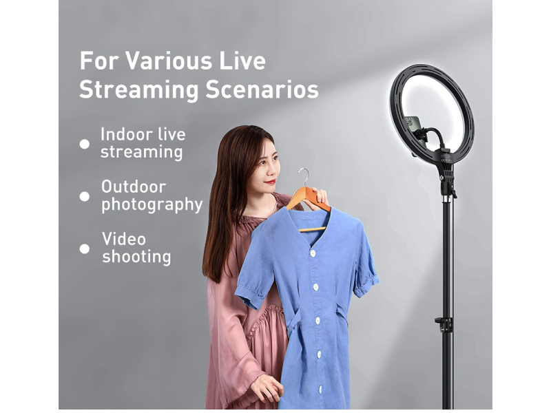 رینگ لایت یا همان حلقه نور وسیلهای برای تامین نور فضا هنگام عکاسی یا سلفی است. این محصول معمولا در آرایشگاهها هنگام گرفتن عکسهای حرفه ای استفاده میشوند. با گسترش ویدیوهای اینستاگرام و یوتیوب بسیاری از افراد برای تنظیم نورپردازی های محیط از این لامپ استفاده میکنند. کمپانی Baseus نیز در راستای این نیاز رینگ لایت سلفی بیسوس Baseus Live Stream Holder floor Stand مدل 12 اینچی خودرا به بازار عرضه کرده است. این چراغ علاوه بر هولدر گوشی دارای یک پایه استند نیز میباشد.