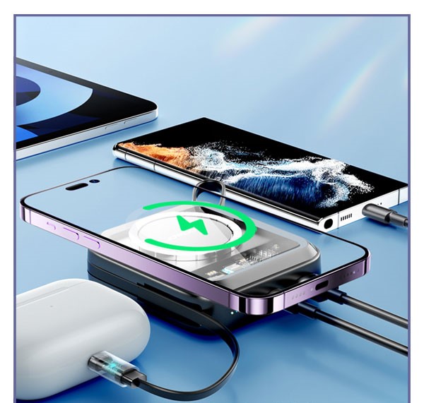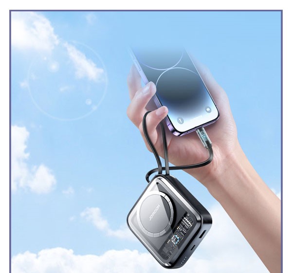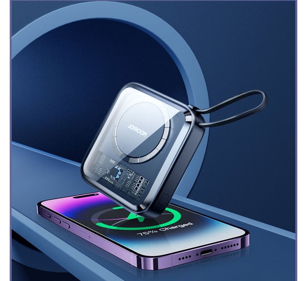 پاوربانک مگنتی با کابل همراه لایتنینگ Joyroom Magnetic Wireless 22.W JR-L007