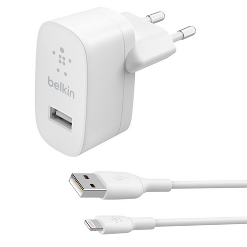 شارژر دیواری شارژ سریع 12 وات + کابل لایتنینگ USB-A بلکین مدل WCA002vf1MWH