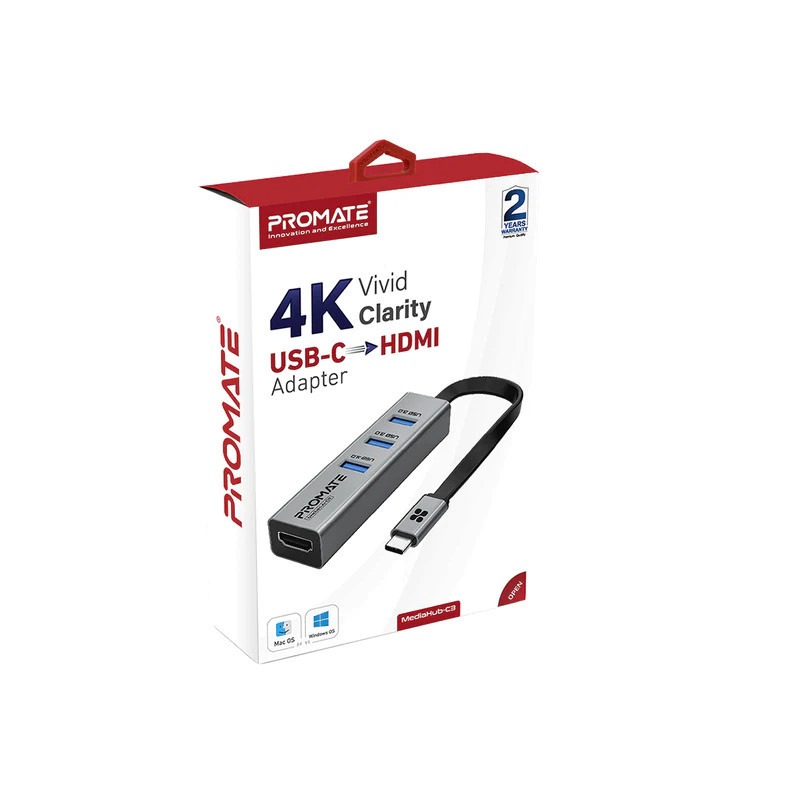 هاب USB-C پرومیت مدل MEDIAHUB-C3 با 4 درگاه خروجی