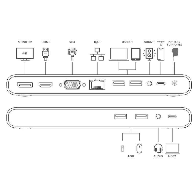"• راه حل نهایی برای گسترش ارتباطات، 12x1 Type C Docking station