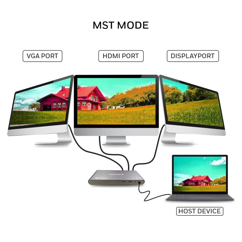 • دارای تکنولوژی MST که اجازه میدهد دسک تاپ به چندین صفحۀ نمایش گسترده شود