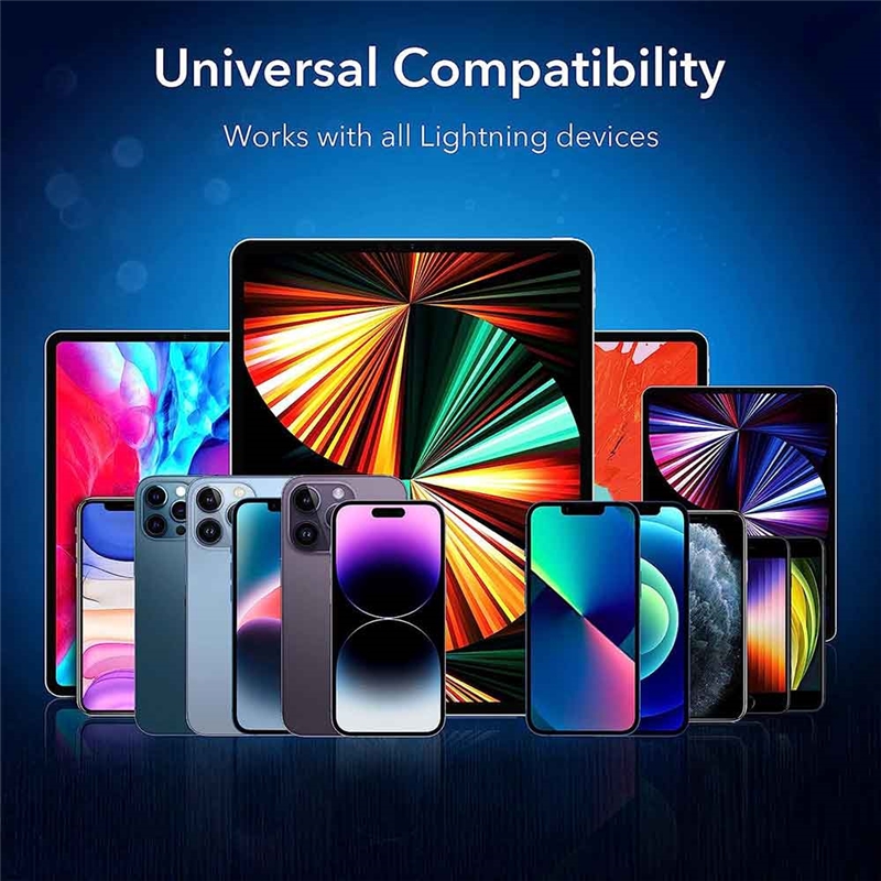 ۴. سازگاری: این کابل USB-C به لایتنینگ از شارژ سریع برای آیفون ۱۴/۱۳/۱۲/۱۱/X/8/7/6، آیفون SE 3/2، آیپد پرو ۱۲.۹ (نسل اول و دوم)، آیپد ۸th Gen، آیپد پرو ۱۰.۵ʺ پشتیبانی میکند. برای این سرعت، نیاز به آداپتور USB-C PD با توان ۱۸W یا بیشتر است.