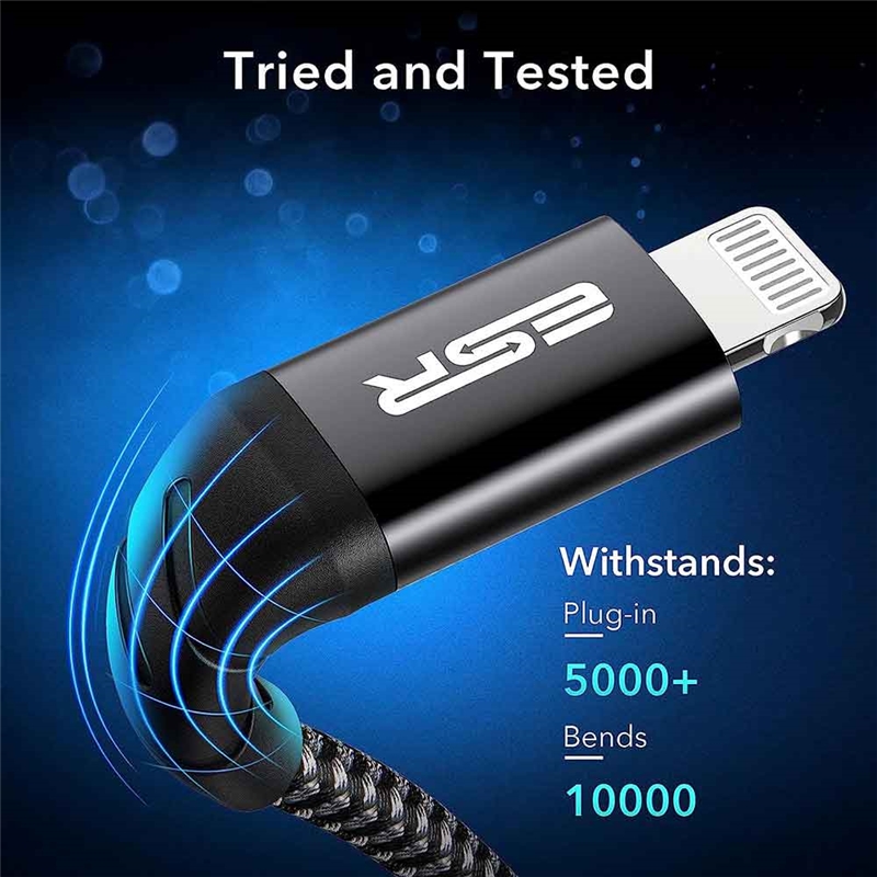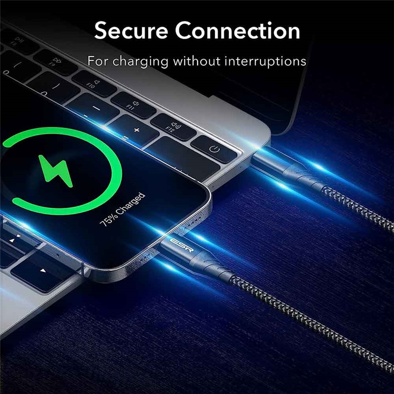 ۶. پایداری ارتباط: طراحی دقیق و استفاده از مواد با کیفیت فوقالعاده، باعث میشود کابل USB-C به لایتنینگ ESR در هر دو سر ارتباطی پایداری را تضمین کند. این کابل شارژی USB-C به لایتنینگ را فراهم میکند که به شما اجازه میدهد بدون وقفه شارژ کنید.